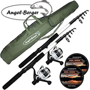 Angel Berger Angelset Komplettset 2 Teleskopruten Rollen Rutentasche Angelruten Angelrollen mit Angelschnur und Rutentasche