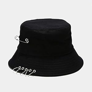 AGAGRG Schwarze fünf Ring Pin Unisex Faltbare Angelmütze atmungsaktiv Sunhat Bob Basin Caps weiche 100% Baumwolle Sonne…