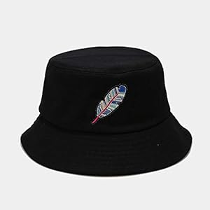 AGAGRG Schwarze Feder Muster Unisex Faltbare Angelmütze atmungsaktiv Sunhat Bob Basin Caps weich 100% Baumwolle Sonne…