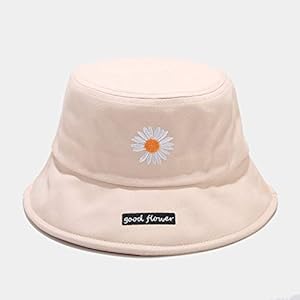 AGAGRG cremig-weiße Muster Stickerei Unisex Faltbare Angelmütze atmungsaktiv Sunhat Bob Basin Caps weich 100% Baumwolle…