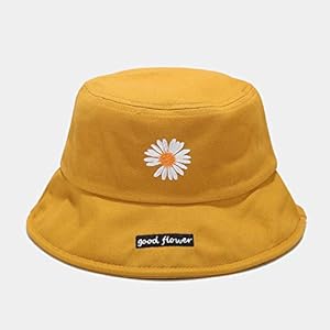 AGAGRG gelbe Muster Stickerei Unisex Faltbare Angelmütze atmungsaktiv Sunhat Bob Basin Caps weich 100% Baumwolle Sonne…