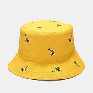 Gelbe Kokosnuss-Baum-Muster Unisex faltbare reversible Angelmütze atmungsaktive Sonnenhut Bob Becken Caps weich 100…