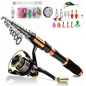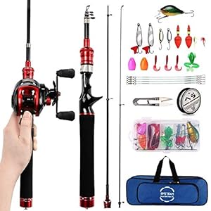 BNTTEAM Tragbares Angelrute Teleskop-Angeln Stationärrolle Carbone Spinnruten Combo Angelschnur Angelköder Zubehör mit…