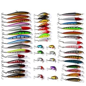 CHSEEO 56 Stück Wobbler Kunstköder Set Angel-Köder Forellenköder Angelhaken Perfekt zum Hecht Zander Angeln Barsch Forelle Dorsch Swimbait Jerkbait Angelzubehör Angelset #6