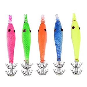 Dilwe Tintenfisch Angelhaken, 5 Stück Nachtleuchtende künstliche Ärmel-Fisch fangen Angelköder Köder Haken für Süßwasser…