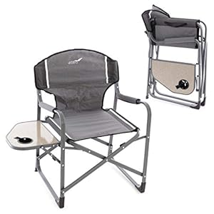 Divero Regiestuhl mit Armlehnen und Getränkehalter + Ablage â Polyester Aluminium â Farbe: Rahmen hellgrau – Bespannung grau