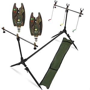 G8DS® Set Rod Pod Rutenhalter + Tragetasche inklusive 2 Bissanzeiger mit Lautstärkeregler Karpfen Angeln