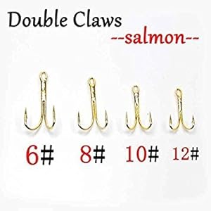 8: [100 Stück] Scharfe, goldfarbene Doppelklauen, Lachsfliegenhaken, Fliegenbinden, Luftschlangen, Angelhaken für Köder…