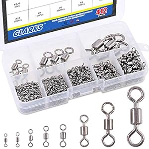 Glarks 412 Stück Angelwirbel aus Edelstahl, schwarz, vernickelt, Angelzubehör #2#4#6#8#10#2/0#4/0#8/0 (13,6 kg – 250 kg)