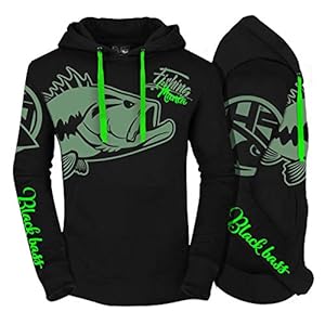 HOTSPOT DESIGN Hoodie Fishing Mania Bass, schwarz, Kapuzensweater Fuer Angler