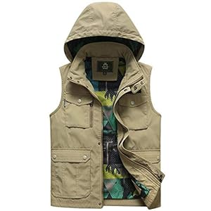 HX fashion Herren Outdoor Weste Multi Tasche Kapuzenweste Anglerweste Bequeme Größen Weste Weste Weste Jagd Photographie…