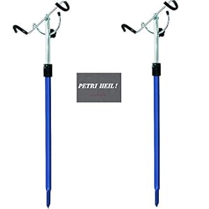 .Jenzi Set: 2 Stück Rutenhalter Höhen und Winkel verstellbar, 55-88 cm, gratis Petri Heil! Aufkleber