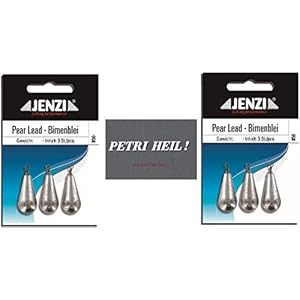 .Jenzi Set: 2 Packungen Birnenblei, 10 Gramm, 2 x 4 Stück,mit Wirbel/Öse .+ gratis Petri Heil! Aufkleber