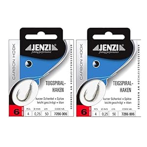 Set: 2 Packungen JENZI Teigspiralhaken Forellen-Haken, Teighaken gebunden (8 Stück) HakengröÃe 2, 4, 6, 8 &10 + gratis Petri Heill! Aufkleber