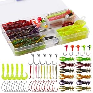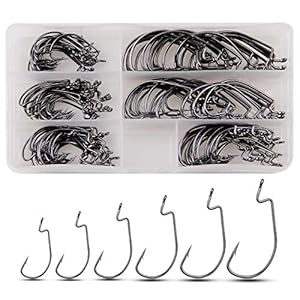 JSHANMEI Angelhaken Kit Wurmhaken – Barsch Angeln Offset Wurm Jig Haken 2X Stärker High Carbon Stahl Soft Bait Hooks Kit…
