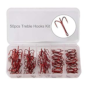 JSHANMEI Treble Haken-Set mit Tackle Box High Carbon Stahl Super Sharp Ultra Stärke Angeln Haken für Süß-Salzwasser