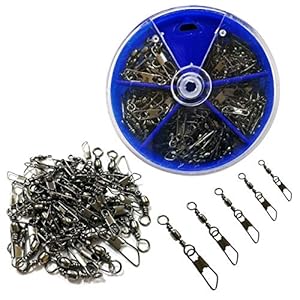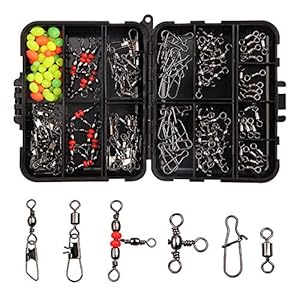 JSHANMEI Angelwirbel-Set, Duo Lock Snaps, Kugellager-Wirbel, Barrel Swivel Fish Line Connector Tackle Box Edelstahl hohe…