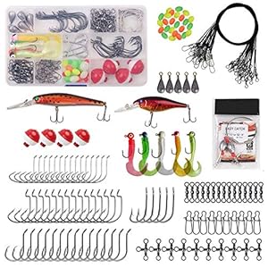 150 Stück Salzwasser Angelköder Surf Angeln Tackle Kit – Angelköder-Rigs, Angelkreis-Haken, Angelwirbel Snaps, harte…