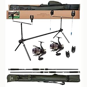 2 x Lineaeffe Commando 60 1BB, Camo Freespool Karpfenläufer, Präparat, Angelrollen, vorgeladen mit 5,4 kg Karpfenschnur und 2 Schutztaschen