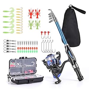 Lixada Teleskop Angelrute und Spule Combo Kit mit 100M Angelschnur Köder Haken Jigkopf und Fischen Tragetasche Fall…
