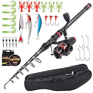 Lixada Teleskop Angelrute und Spule Combo Kit mit 100M Angelschnur Köder Haken Jig Head Angelzubehör und Fischen…