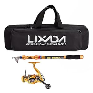 Lixada Angelset Angelrute und Rolle Combo Kohlefaser Teleskop Angelrute mit Spinnrolle Combo Tragetasche Köder Jig Hooks…
