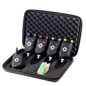 Lixada Wireless Bissanzeiger Fishing Alarm 4 Farben LED Sound Angeln Alarm Funk Bissanzeiger mit Portable Case