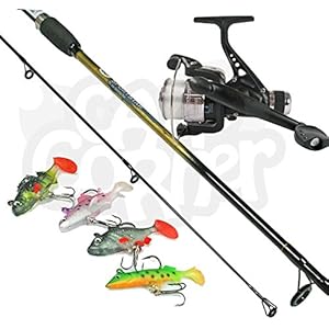 Spinner Set bis komplett mit 6 ft 2pc Rute & Rolle und 4 weichen Gummi Kunstköder hergestellt von NGT