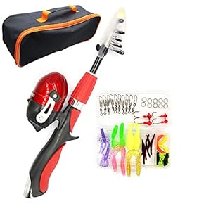 Phoetya JYuanzshi Kinder Angelrute Teleskopstange Tragbare Kinder Angelrute Starter Set Zubehör Geeignet für Jungen und…