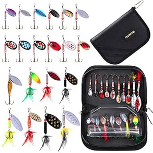 PLUSINNO Angelköder für Barsch, 16 Stück, Spinnerköder mit tragbarer Tragetasche, Barschköder, Forellenköder, Hartmetall…