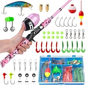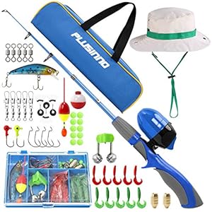 PLUSINNO Angelset für Kinder, Teleskopische Angelrute mit Angelrolle und Angelköder, Angelzubehör und Tragetasche für…