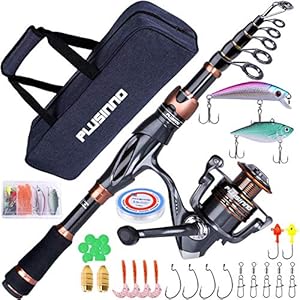 PLUSINNO Angelrute und Rolle Combos – Kohlefaser Teleskop-Angelrute – Spinnrolle 12 + 1 geschirmte Kugellager Edelstahl…