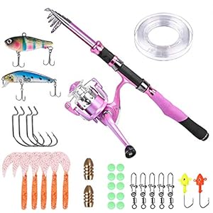 PLUSINNO Teleskop-Angelrute und -rolle für Damen, rosafarbene Angelrute
