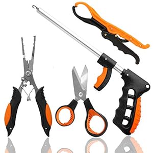 RONGJUN 4-teiliges Multifunktionswerkzeug-Set, Angelzange, Fischhakenentferner, Fischlippengreifer und Angelschnurschere