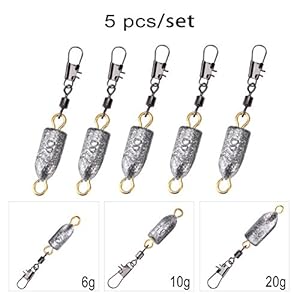 Angeln Gewichte, 5 Stück Angelgewichte Kit Kugel Blei Sinkers Rolling Swivel Angeln Drop Shot Gewichte Bullet Sinkers mit Verriegelung Schnappverbinder