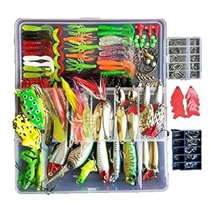 Topconcpt 275-teiliges Süßwasser-Angelköder-Set, Angelzubehör-Box mit Zubehör, Froschköder, Angellöffel, Salzwasser…