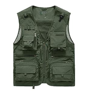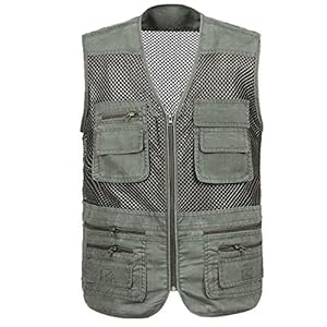 Angeljacke, Weste aus solidem Netz, für Camping, Herren, große Größe, Reißverschluss, Armee, Outdoor