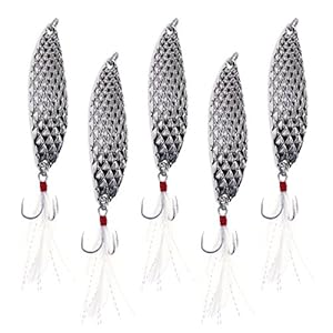 VORCOOL 5er-Set Angelköder â Metall-Löffelblinker mit Feder (Silber/WeiÃ) | Hochwertige Kunstköder für Raubfische | Wasserfreundlich