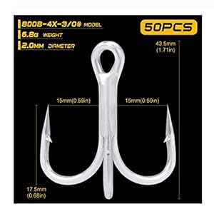 CCH-Hooks, 4X 50pcs Salzwasser Angelhaken Mattzinn Drillinge 4/0# -3/0# -1/0# # -1-2# -4# -6# Hochkohlenstoffstahl-High…