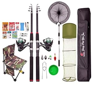 XHCP Angelruten-Kombination, Angelruten-Set Reise-Angellampe Tragbares Teleskop 2000LM 96-teiliges Angelruten-Licht…