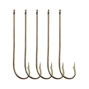 Z&S Angelhaken mit langem Schaft, aus Karbonstahl, zum Fliegenbinden, Jighaken, super scharf, mit Widerhaken, hellbraun…