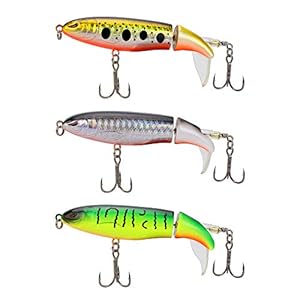 Kastwill Bleistift Popper Wobbler Kunstköder Angelköder Set 3Pcs S15cm 36g Swimbait Kunstköder mit 2 Drillingshaken Gummifische und Rotierenden Schwanz für Hecht Barsch Zander Angeln Köder