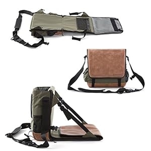 EVENaBAG Sitztasche, ausklappbarer Liegematte und aufhängebarem Kulturbeutel in Olivgrün | Echtleder Schultertasche für Herren & Damen