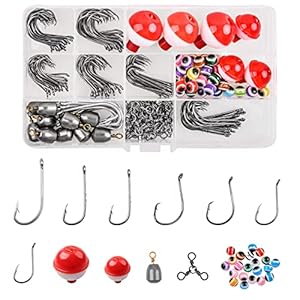 Angelhaken Bobbers Sinkers Süßwasser Angelset, 196Stk Catfish Gear Tackle Box inklusive Angelhaken Bobber Floats Sinker…