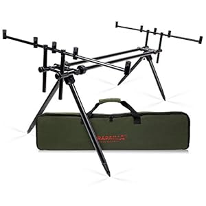 Rod Pod Riverbank – Rutenhalter aus Aluminium für bis zu 5 Angelruten – verstellbare Rutenauflage mit Tasche für Karpfen – und Allroundangeln