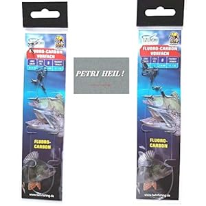 Set: 4 Stück Behr Fluoro-Carbon Vorfach mit Wirbel & Karabiner 30+ 35cm,15kg von Behr +gratis Petri Heil! Aufkleber