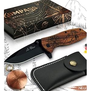 Le Flair® Kompass Messer – Outdoor Messer mit Holzgriff inkl. Kompass + Gürteltasche – Klappmesser – Survivalmesser mit…