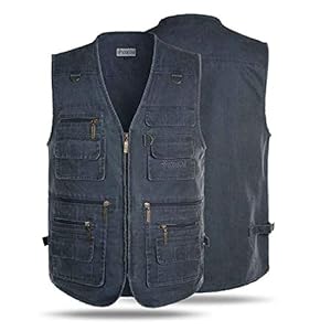 Daoba Herren Jeansweste Fotografen Ärmellos Jacken Outdoor Camping Multi-Tasche Wandern Arbeitsweste Baumwolle…