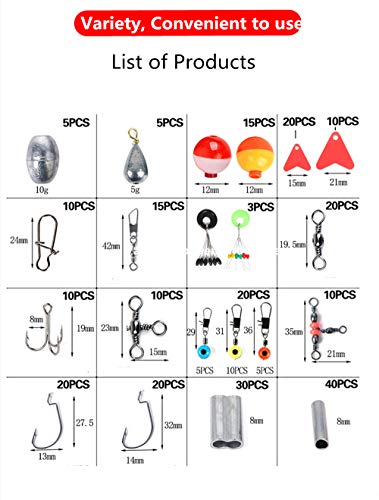 【VERSCHIEDENES FISCHEREIZUBEHÖR】 Das 264-teilige Angelgeräteset sammelt verschiedene Zubehörteile, darunter Haken / Wirbel / Sinkergewichte / Space Beans usw., die für unterschiedliche Angelbedingungen geeignet sind.