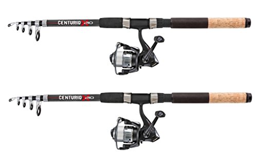 2 x Jenzi Forelle Aal Hecht Karpfen Angelset Combo Tele Centurio 2,10m 20-50 G + Valerio Rolle + gratis Angelschere